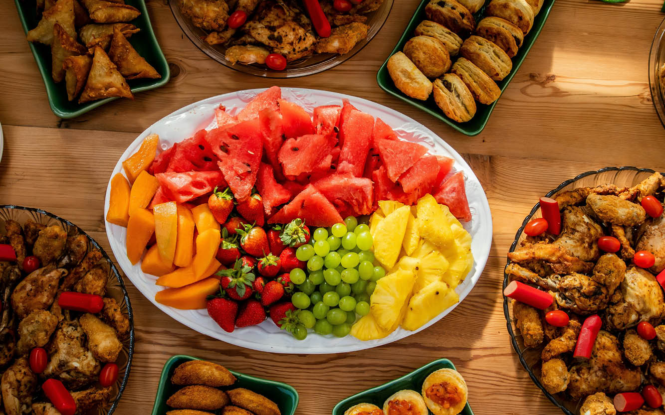 - Offer Healthy Food Choices: Include colourful fruits and vegetables in party snack platters and meals, and find ways to present these creatively, for example, make watermelon Christmas trees, strawberry Santa hats, or veggie candy canes.
